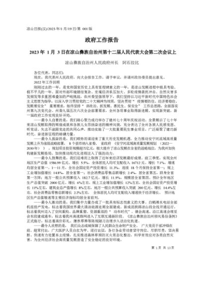 署名文章:2023.01.19凉山彝族自治州人民政府州长阿石拉比:政府工作报告