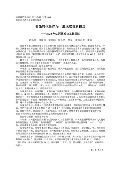 署名文章:2023.01.18通讯员白福保简翠琼钱礼博夏星本报记者李芳:彰显时代新作为展现政协新担当