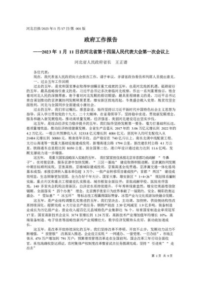 / 署名文章:2023.01.17河北省人民政府省长王正谱:政府工作报告