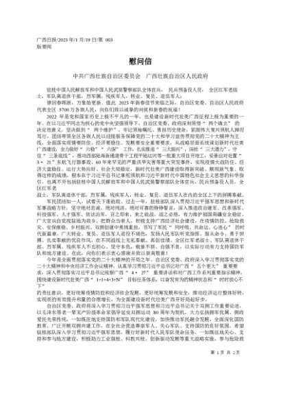 / 署名文章:2023.01.19中共广西壮族自治区委员会广西壮族自治区人民政府:慰问信