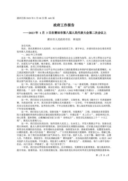 / 署名文章:2023.01.18莆田市人民政府市长林旭阳:政府工作报告