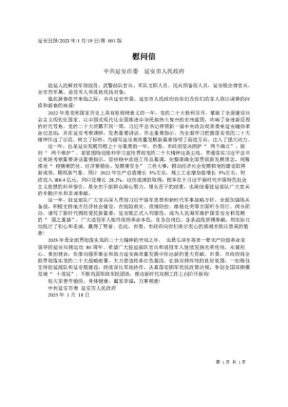 / 署名文章:2023.01.19中共延安市委延安市人民政府:慰问信