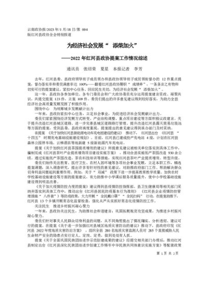 署名文章:2023.01.18通讯员张绍荣夏星本报记者李芳:为经济社会发展添柴加火