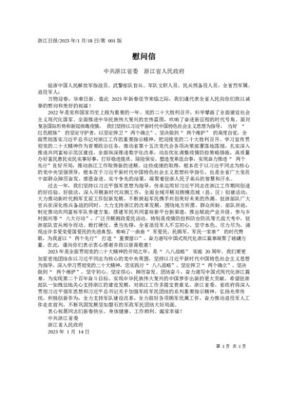 / 署名文章:2023.01.18中共浙江省委浙江省人民政府:慰问信