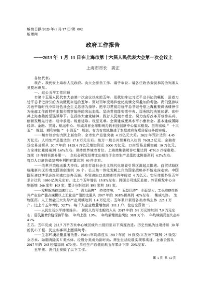 / 署名文章:2023.01.17上海市市长龚正:政府工作报告