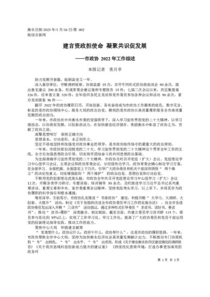 / 署名文章:2023.01.16本报记者张月亭:建言资政担使命凝聚共识促发展