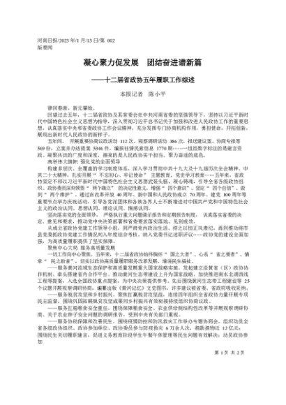 / 署名文章:2023.01.13本报记者陈小平:凝心聚力促发展团结奋进谱新篇