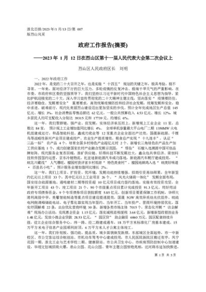 署名文章:2023.01.13烈山区人民政府区长刘明:政府工作报告(摘要)
