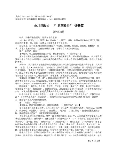 署名文章:2023.01.13永川区政协:永川区政协五型政协谱新篇