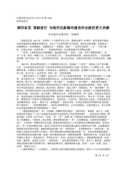 / 署名文章:2023.01.13中共滁州市委书记许继伟:踔厉奋发勇毅前行为现代化新滁州建设作出新的更大贡献