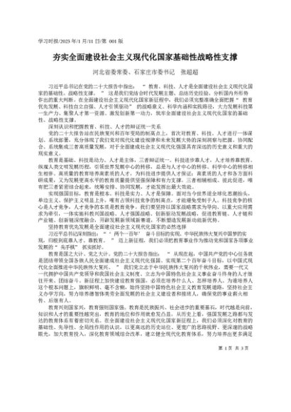 / 署名文章:2023.01.11河北省委常委、石家庄市委书记张超超:夯实全面建设社会主义现代化国家基础性战略性支撑