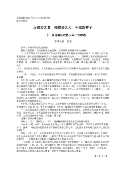 / 署名文章:2023.01.12本报记者高菲:尽政协之责倾政协之力干出新样子