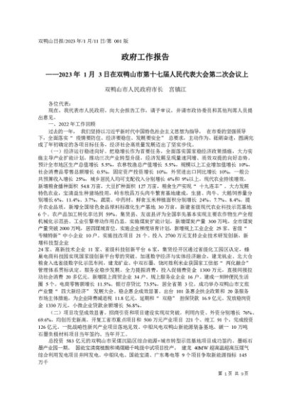/ 署名文章:2023.01.11双鸭山市人民政府市长宫镇江:政府工作报告