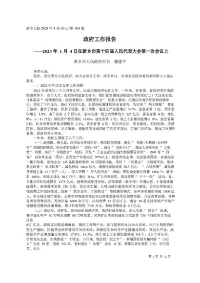 / 署名文章:2023.01.10新乡市人民政府市长魏建平:政府工作报告