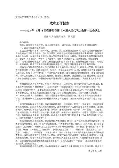 / 署名文章:2023.01.09洛阳市人民政府市长徐衣显:政府工作报告