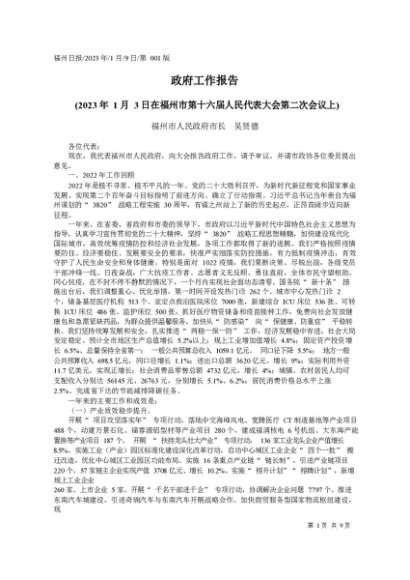 / 署名文章:2023.01.09福州市人民政府市长吴贤德:政府工作报告