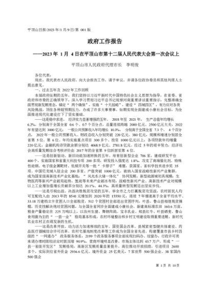 / 署名文章:2023.01.09平顶山市人民政府代理市长李明俊:政府工作报告