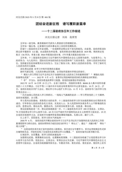 / 署名文章:2023.01.09河北日报记者刘冉高原雪:团结奋进新征程谱写履职新篇章