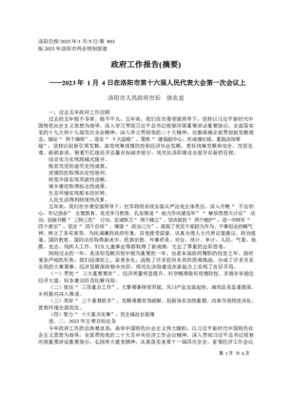 / 署名文章:2023.01.05洛阳市人民政府市长徐衣显:政府工作报告(摘要)
