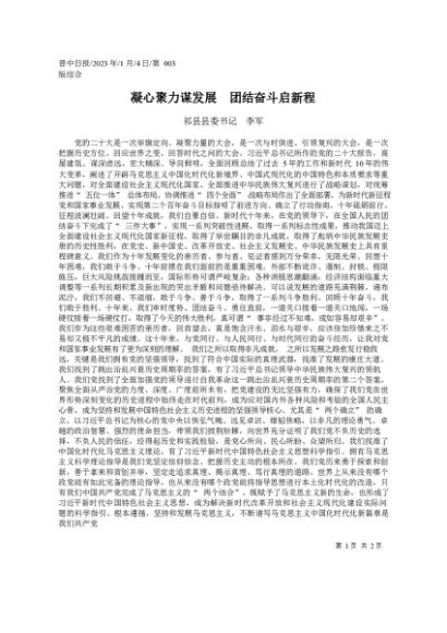 / 署名文章:2023.01.04祁县县委书记李军:凝心聚力谋发展团结奋斗启新程