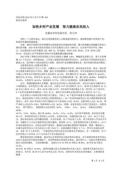 / 署名文章:2023.01.07安徽省阜阳市副市长郑久坤:加快乡村产业发展努力提高农民收入