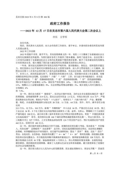 / 署名文章:2023.01.05市人民政府市长吴劲:政府工作报告