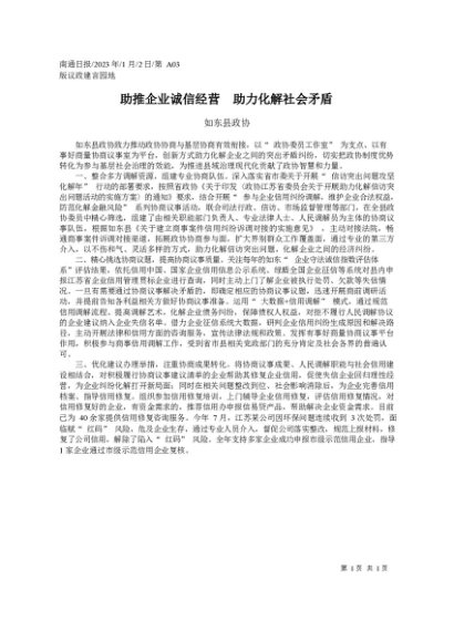 署名文章:2023.01.02如东县政协:助推企业诚信经营助力化解社会矛盾