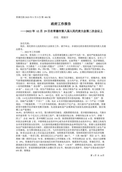 署名文章:2023.01.03市长周振宇:政府工作报告