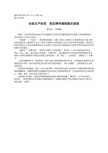 / 署名文章:2023.01.01副市长罗晓皓:全面从严治党把纪律和规矩挺在前面
