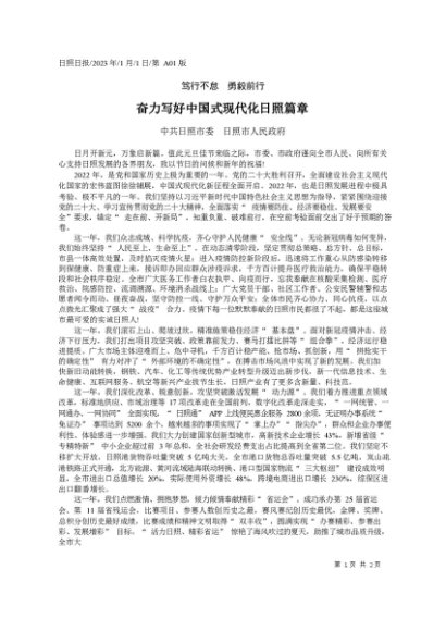 署名文章:2023.01.01中共日照市委日照市人民政府:奋力写好中国式现代化日照篇章