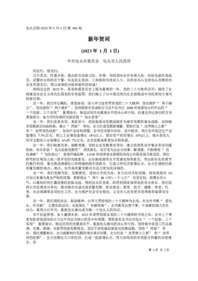 / 署名文章:2023.01.01中共包头市委员会包头市人民政府:新年贺词