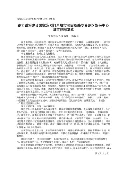 署名文章:2022.12.21中共建阳区委书记魏敦盛:奋力谱写建设国家公园门户城市和闽浙赣交界地区新兴中心城市建阳篇章
