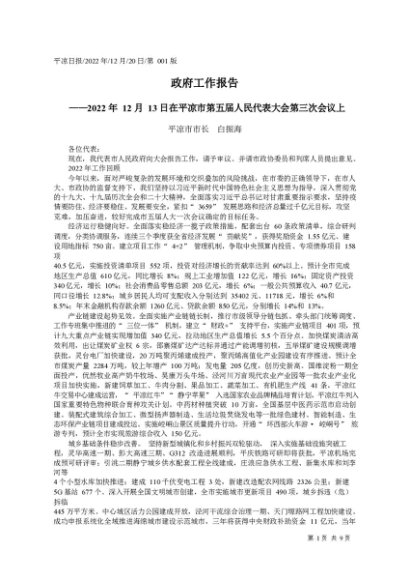 / 署名文章:2022.12.20平凉市市长白振海:政府工作报告