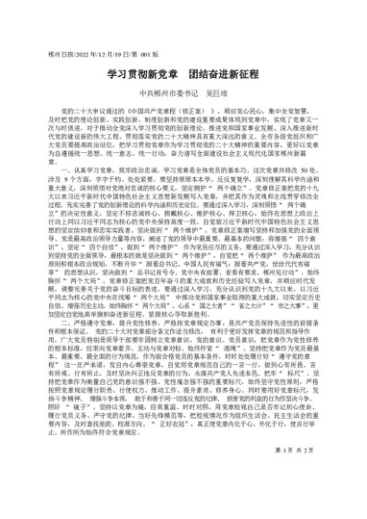 / 署名文章:2022.12.19中共郴州市委书记吴巨培:学习贯彻新党章团结奋进新征程