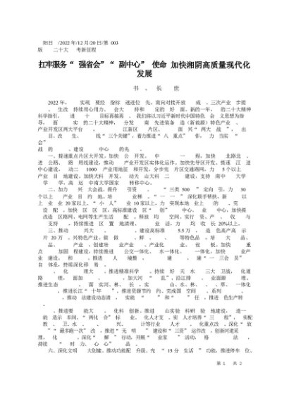 / 署名文章:2022.12.20湘阴县委副书记、县长刘世奇:扛牢服务强省会副中心使命加快湘阴高质量现代化发展