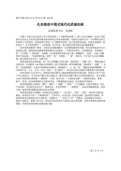 / 署名文章:2022.12.16武城县委书记朱恩鹤:扎实推进中国式现代化武城实践