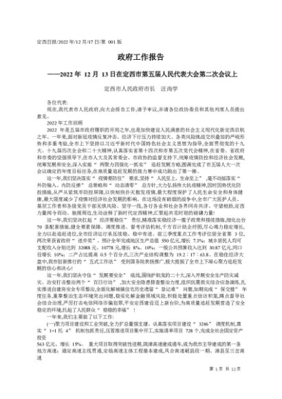 / 署名文章:2022.12.17定西市人民政府市长汪尚学:政府工作报告