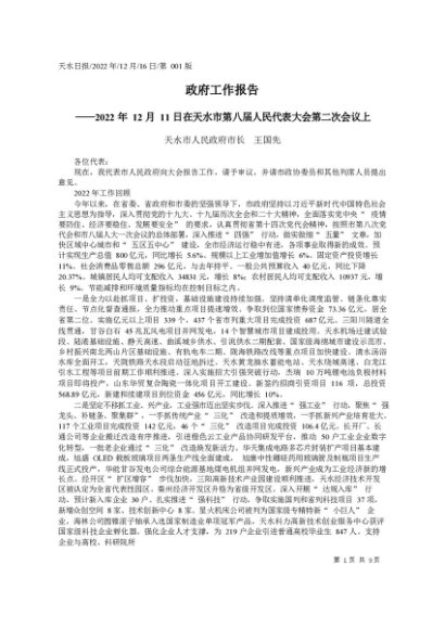 署名文章:2022.12.16天水市人民政府市长王国先:政府工作报告