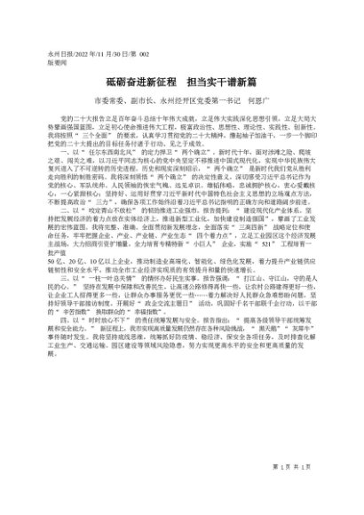 署名文章:2022.11.30市委常委、副市长、永州经开区党委第一书记何恩广:砥砺奋进新征程担当实干谱新篇