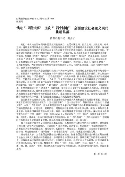 / 署名文章:2022.12.06昌都市委书记龚会才:锚定四件大事主攻四个创建全面建设社会主义现代化新昌都