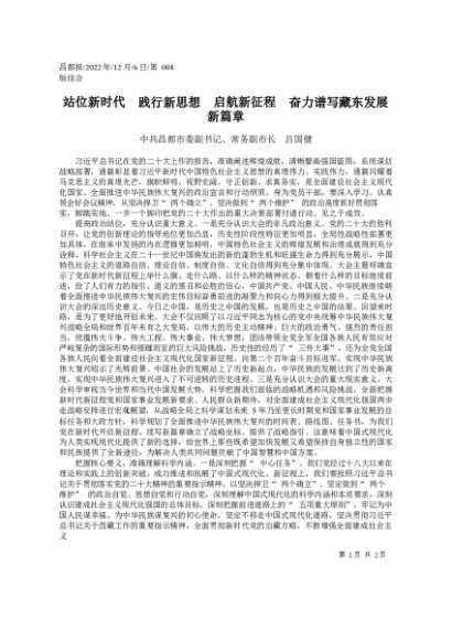 署名文章:2022.12.06中共昌都市委副书记、常务副市长吕国健:站位新时代践行新思想启航新征程奋力谱写藏东发展新篇章