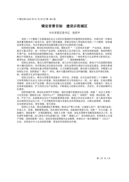 署名文章:2022.11.25中共茅箭区委书记张捍声:锚定首善目标建设示范城区