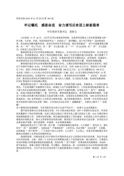 / 署名文章:2022.11.29中共菏泽市委书记张新文:牢记嘱托感恩奋进奋力谱写后来居上崭新篇章