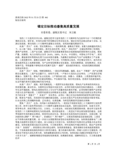 署名文章:2022.11.21市委常委、潘集区委书记宋立敏:锚定目标推动潘集高质量发展