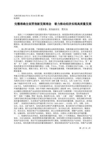 / 署名文章:2022.11.14市委常委、常务副市长贾庆东:完整准确全面贯彻新发展理念着力推动经济实现高质量发展