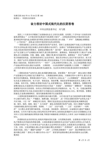 / 署名文章:2022.11.10中共汉阴县委书记刘飞霞:奋力答好中国式现代化的汉阴答卷