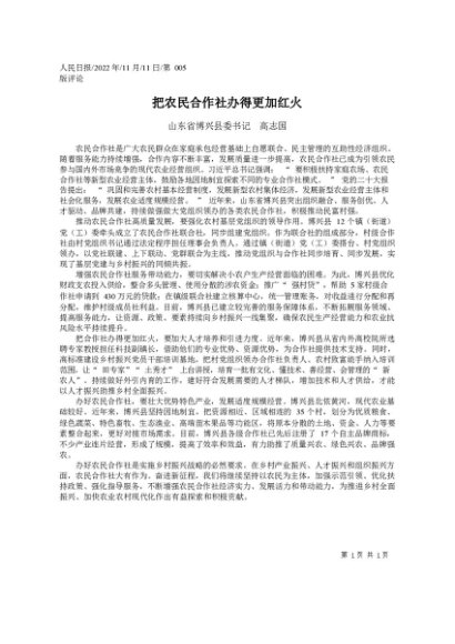 署名文章:2022.11.11山东省博兴县委书记高志国:把农民合作社办得更加红火