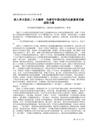 署名文章:2022.11.09中共益阳市委副书记、益阳市人民政府市长陈竞:深入学习党的二十大精神为谱写中国式现代化新篇章贡献益阳力量