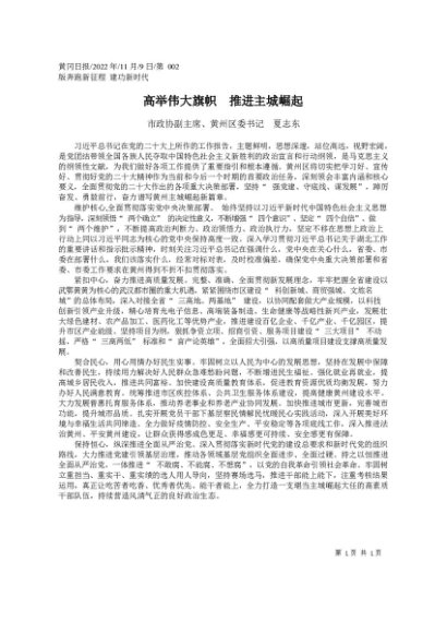 署名文章:2022.11.09市政协副主席、黄州区委书记夏志东:高举伟大旗帜推进主城崛起