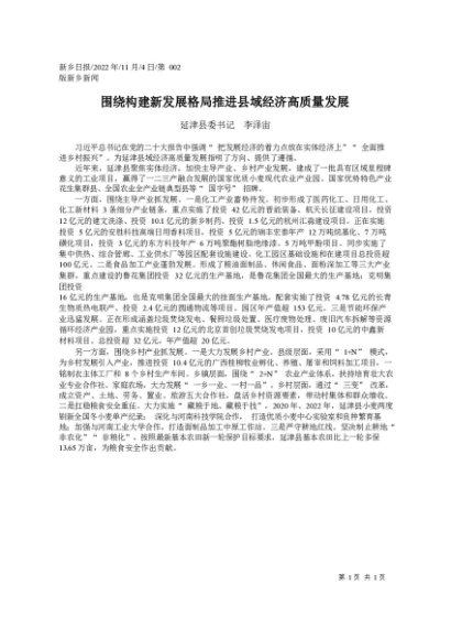 / 署名文章:2022.11.04延津县委书记李泽宙:围绕构建新发展格局推进县域经济高质量发展